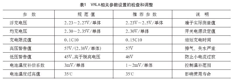 VRLA相关参数设置的检查和调整如表1所示。